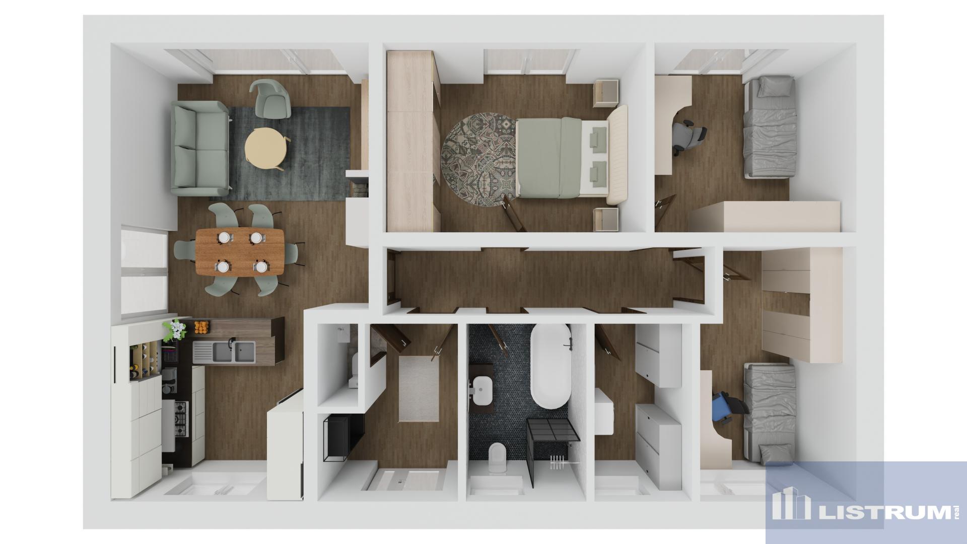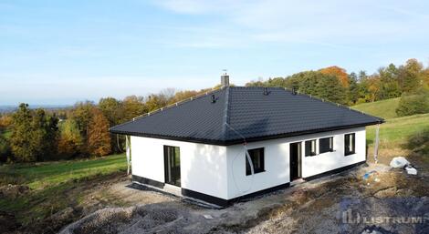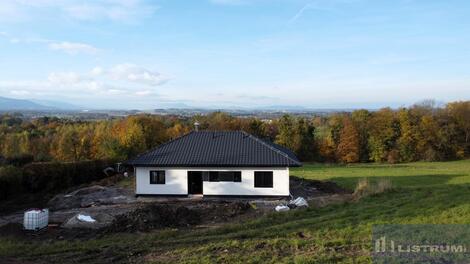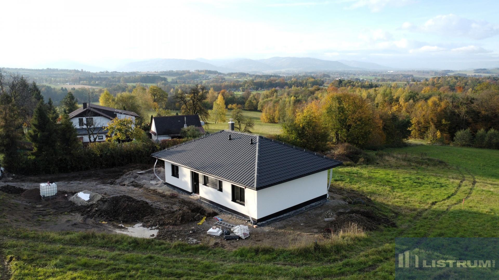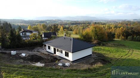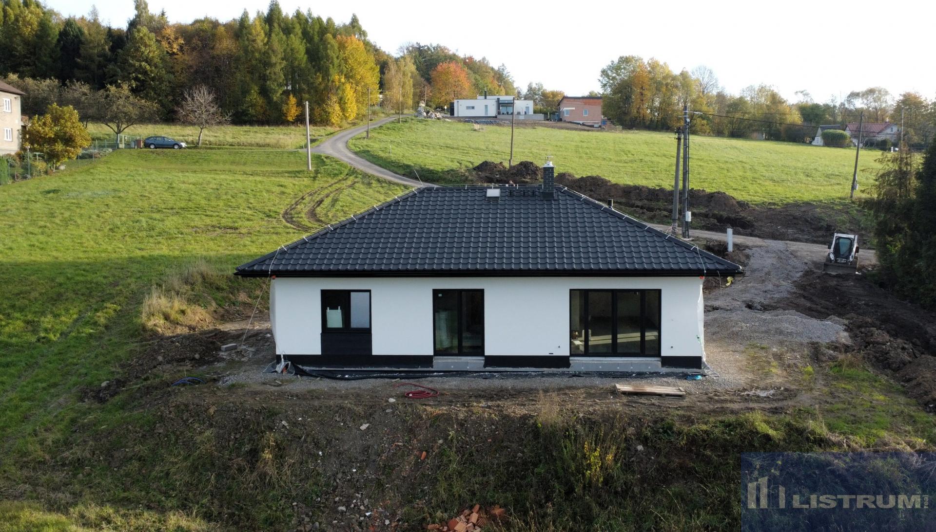 Nabízíme k prodeji novostavbu RD 4+kk+technická místnost, postavenou v roce 2024/2025, umístěnou v klidné a lukrativní části obce s krásným výhledem na panorama Beskyd. Dům je přízemní typu bungalov s pozemkem o celkové výměře 1.000 m2. Zásadní výhodou této nemovitosti je zejména její umístění v klidné části obce, s krásným výhledem na panorama Beskyd a do širokého okolí. Obytná část domu je tvořena obývacím pokojem s navazující kuchyní a jídelnou (celkem 31 m2) a se vstupem na terasu a zahradu francouzským oknem, třemi ložnicemi (15 m2, 12 m2, 12 m2 ), jedna z ložnic se šatnou (4 m2), koupelnou s vanou a sprchou a WC (6,5 m2), WC, zádveřím (7 m2 ), technickou místností (5 m2 ) a chodbou. Zastavěná plocha domu je 125 m2 a užitná plocha domu je 97,5 m2. Jako konstrukce obvodových stěn je použit cihlový systém Porotherm + 20 cm fasádní polystyren. Střecha je valbová s plechovou profilovanou krytinou. Komín Schiedel. Vytápění tepelným čerpadlem napojeným na podlahové opení s možností připojení krbu s teplovodní vložkou. Přívod vody z vodovodu, odpadní vody do vlastní ČOV. Omítky sádrové, okna s izolačním trojsklem, zateplení stropu 40 cm minerální vatou. Dále bude provedena příprava pro položení zámkové dlažby. Dům možno koupit ve stavu stávajícím, případně po dohodě s majitelem s možností dostavby do jakéhokoliv stavu. Vynikající dopravní dostupnost směr ČT (5 km), Havířov (10 km), F-M (20 km) Ov (25 km), Ki (17 km). Nájezd na dálnici 4 km.