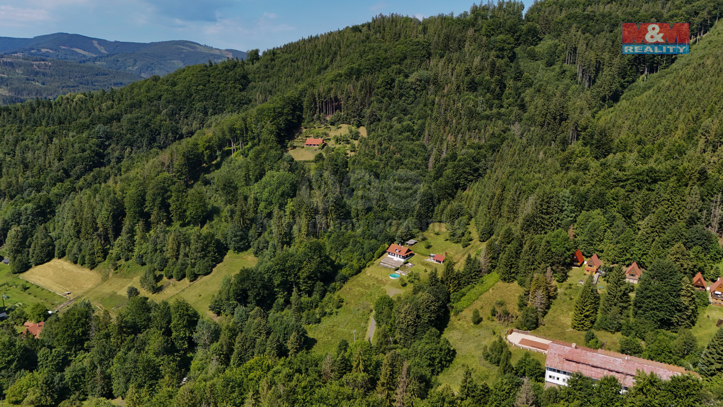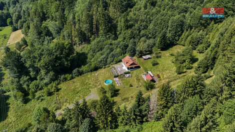 Představte si ráno, kdy sluneční paprsky pronikají do korun stromů, les voní a jen zpěv ptáků ruší ticho probouzejícího se údolí. Pokud Vás tato představa pohltila, pak právě Vám je určena naše nabídka. Představujeme horskou chalupu 5+1 s č. p.; v obci Morávka; pozemek 17.331 m2, jež vytváří Vaše vlastní slunečné údolí lemované loukami a lesy a bonusem je naprostý klid, bez sousedů. Jen Vy a příroda. Na oploceném pozemku, v soukromí slunečného horského údolí s JV orientací, se nachází dvoupodlažní horská chalupa s užitnou plochou 294 m2, půdou, kamenným sklepem. Dále budova s dílnou a pergolou 101 m2; bazén (Ø 6 m, hl. 1,5 m). Voda z vlastního pramene přivedená do objektu; elektřina 230 V; vytápění dřevem z vlastního lesa (kamna, krb), vlastní příjezdová cesta napojená na obecní komunikaci a parkování pro 5 aut. Lze dokoupit les o rozloze 63.759 m2, který dokonale orámuje Vaše soukromí. V případě zájmu o bližší informace zavolejte a domluvte si osobní prohlídku.